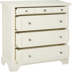 A felt-lined top drawer is especially good for jewelry and three additional drawers